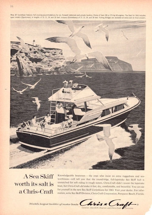 1963 Chris Craft Print Ad Features 38ft Corinthian Sea Skiff Offshore Boat Ebay
